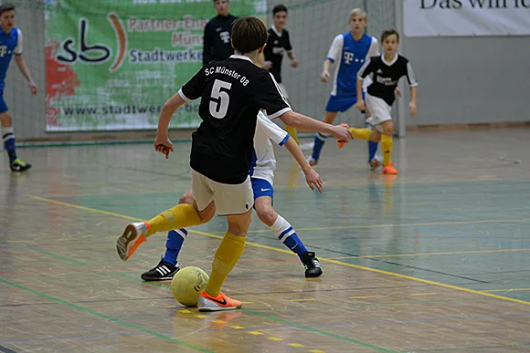 BORKEN (rw). Die ersten Sieger des 38. internationalen Jugendfußball-Hallenturniers von Westfalia Gemen stehen fest: Nachdem sich bereits am Freitag der 1. FC Bocholt in der Mergelsberg-Sporthalle den Siegerpokal bei den D-Junioren holte, sicherte sich am frühen Samstagnachmittag der SC Münster 08 den Gesamtsieg bei den C-Jugendlichen.