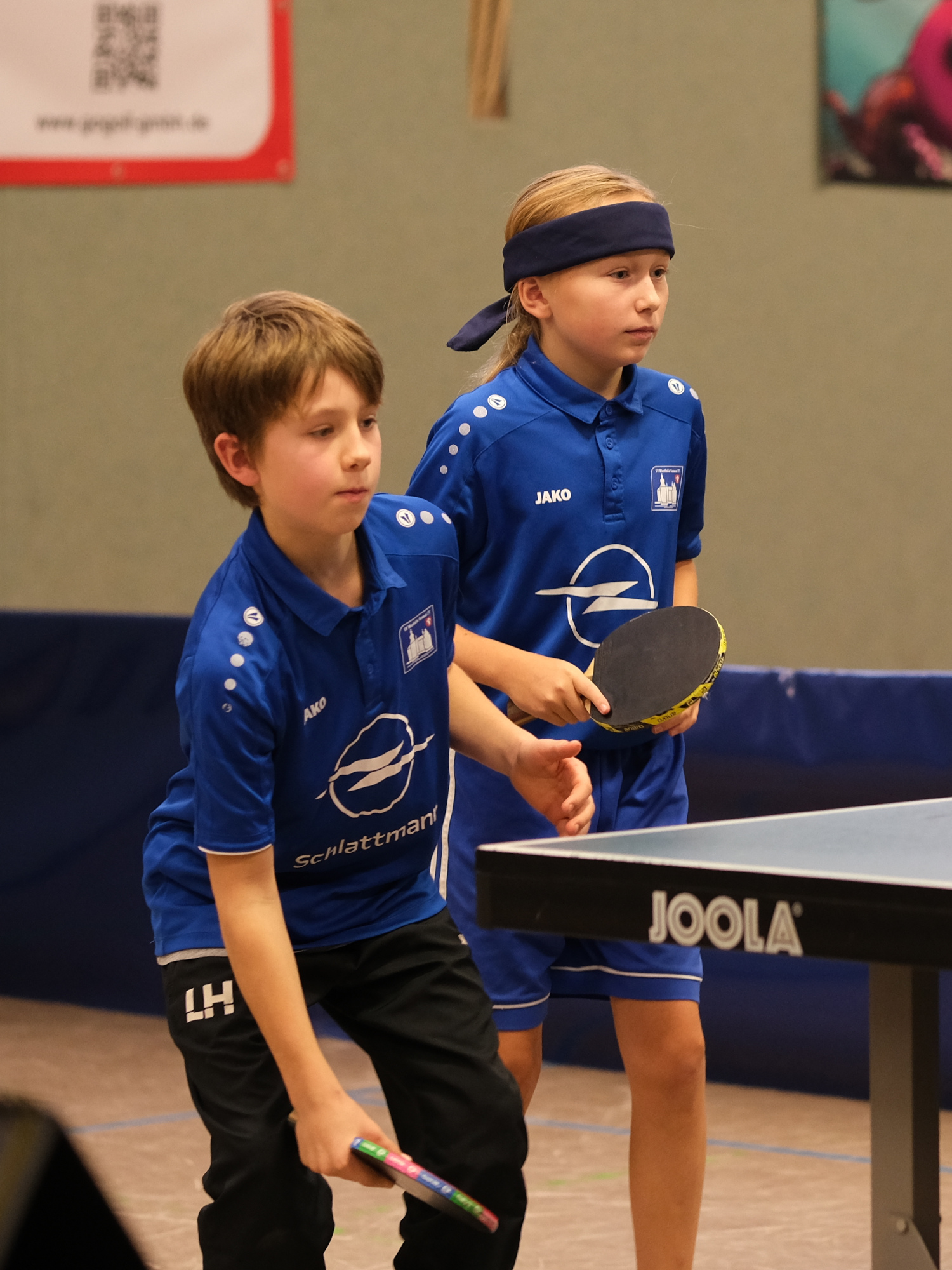 In der Doppelkonkurrenz, bei der es keine Unterteilung in Schüler A, B und C gab, traten Langela und Hengstermann hingegen gemeinsam an. Nach einem Freilos erreichten die beiden auch hier das Endspiel. Ihnen gegenüber standen die Brüder Max und Till Fliegner. Am Ende setzten sich Langela und Hengstermann mit 3:0 durch.