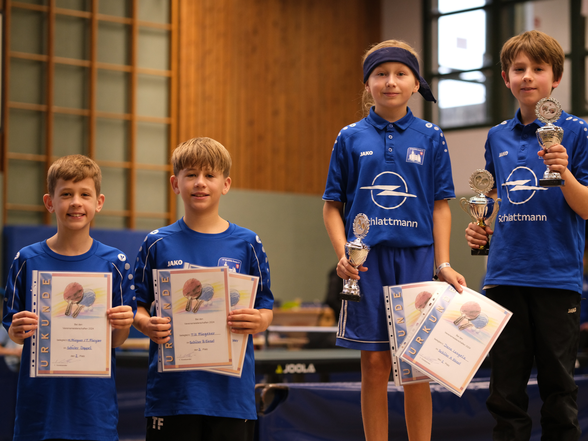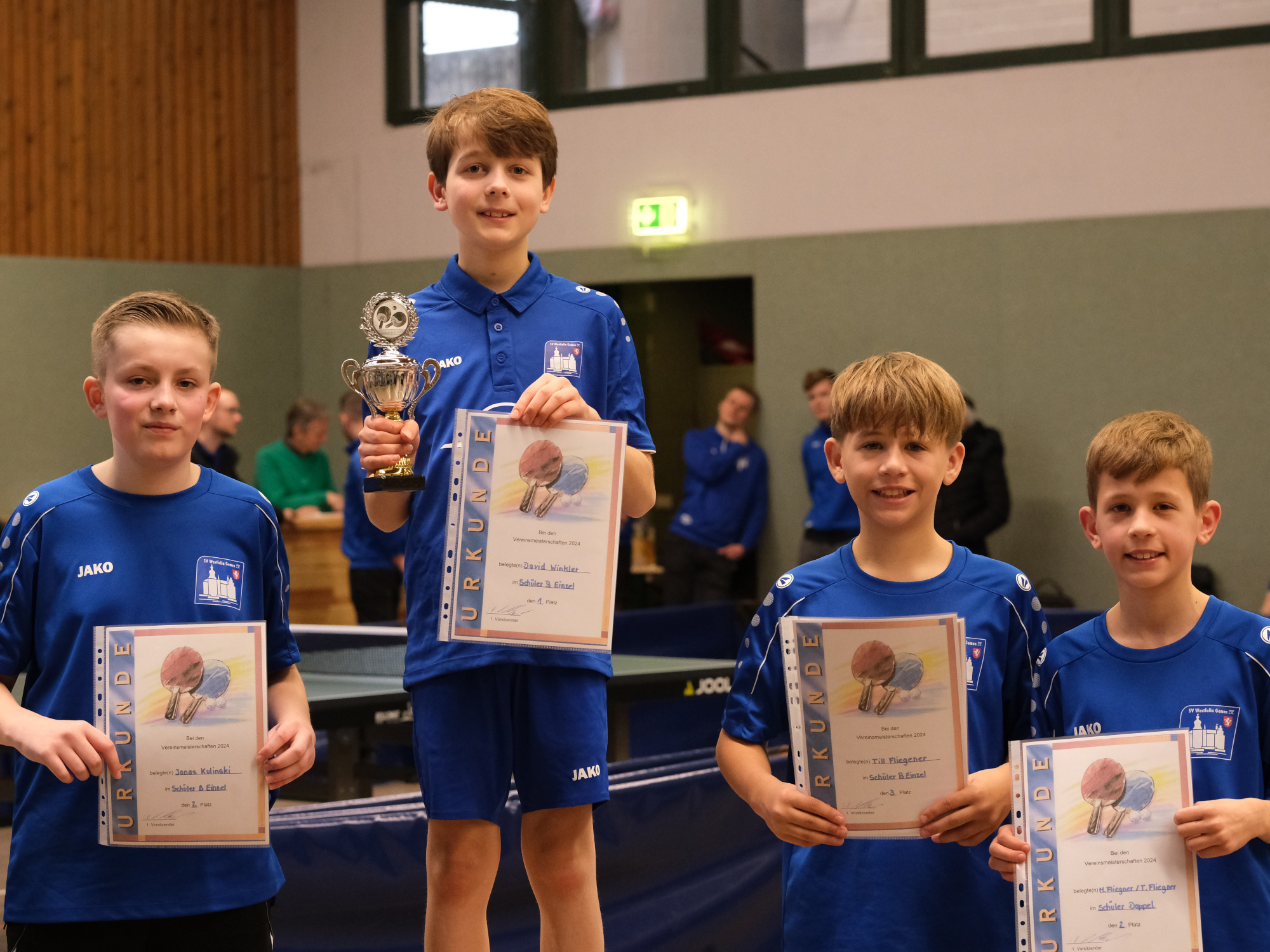 Der Nachwuchs eröffnete, in drei Altersklassen aufgeteilt, am Morgen das Turnier. Im Einzel wurde zunächst „Jeder gegen Jeden“ gespielt, wobei sich die Plätze Eins und Zwei fürs Finale qualifizierten. Bei den Jüngsten wurde Toni Naßmacher Vereinsmeister vor Noah Wittig und Klim Weber. Naßmacher hatte das Finale ohne Satzverlust erreicht und behielt auch dort seine weiße Weste.