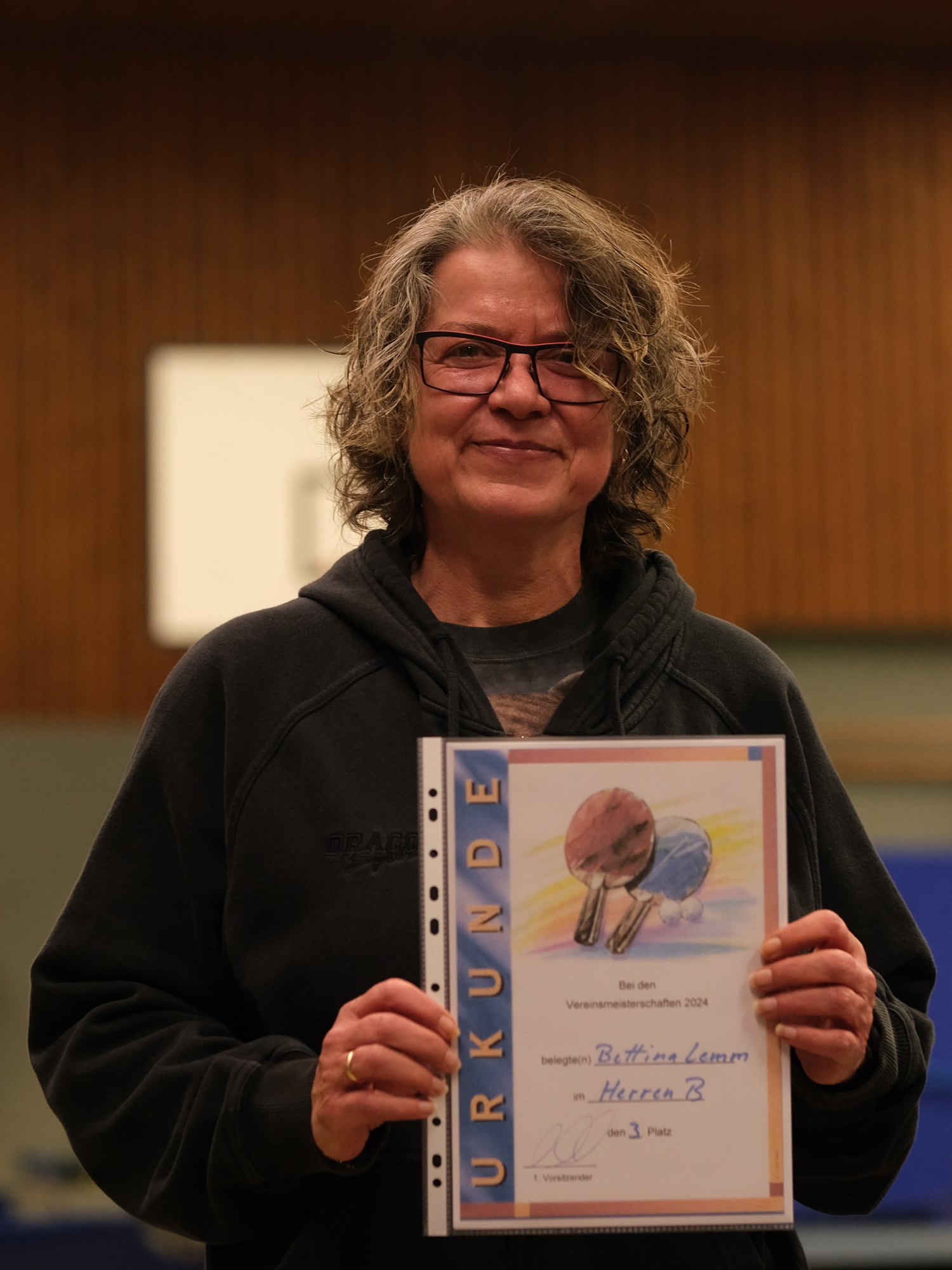 Rinas spielte im Finale der Gruppe B gegen Carsten Sonntag und gewann es mit 3:2 in den Sätzen. Dritte in dieser Gruppe wurde die einzige Frau im Starterfeld, Bettina Lemm!