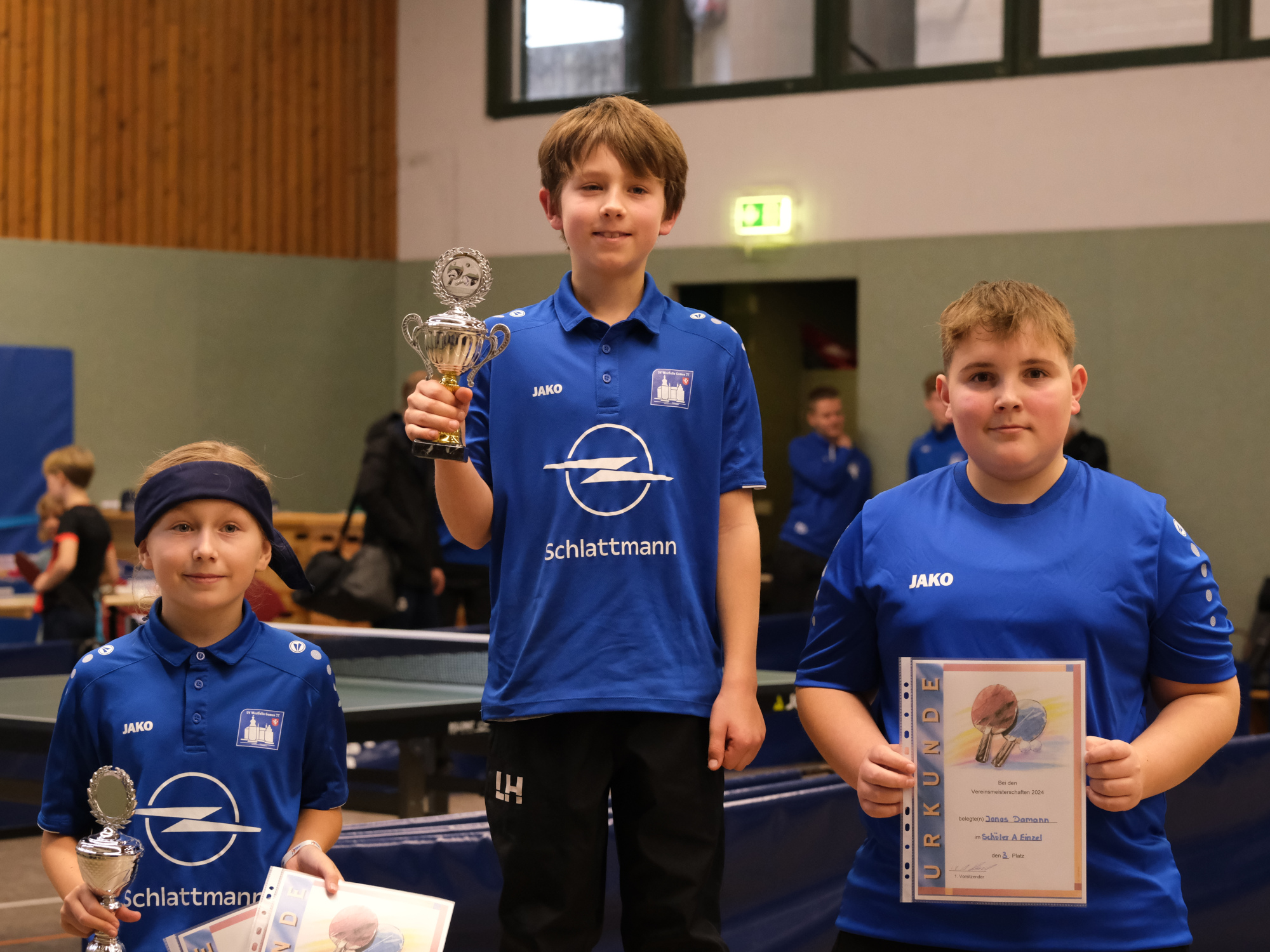 In der Gruppe der Schüler A erreichte Lukas Hengstermann vor Dana Langela das Finalspiel. Dort setzte er sich mit 3:0 Sätzen gegen seine Kontrahentin durch. Die Vorrundenpartie der beiden hatte noch mit 3:1 geendet. Der Drittplatzierte heißt Jonas Damann.