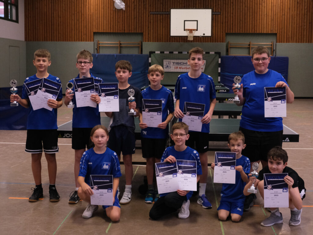 Die Tischtennis-Abteilung hat am Samstag vor dem 2. Advent ihre Vereinsmeisterinnen und Vereinsmeister ermittelt. Der Tag startete morgens mit den Nachwuchsklassen, von denen es dank des Wachstums der letzten Jahre insgesamt drei gab. Bei den Jüngsten – Schüler C – gewann David Herbez vor Jano Wewers und Vinz Straede.