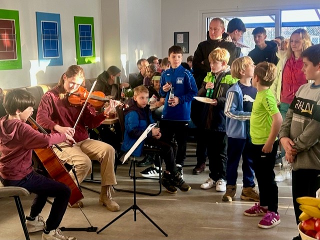 begeisterte Tennisspieler sind, mit Beiträgen auf Violine und Cello. Zudem hatte
