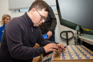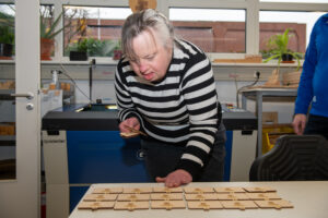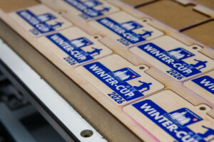 Bei einem Besuch in den Werkstätten in Borken konnte sich eine Delegation unseres Vereins selbst davon überzeugen, wie viel Arbeit und Präzision in jeder einzelnen Medaille steckt. Moderne Technik trifft hier auf sorgfältige Handarbeit: Holzplatten werden gelasert, Motive eingebrannt, Logos farbig aufgebracht. Jeder Arbeitsschritt wird von den Beschäftigten der Werkstatt ausgeführt – konzentriert, verantwortungsvoll und mit sichtbarem Stolz auf das Ergebnis.